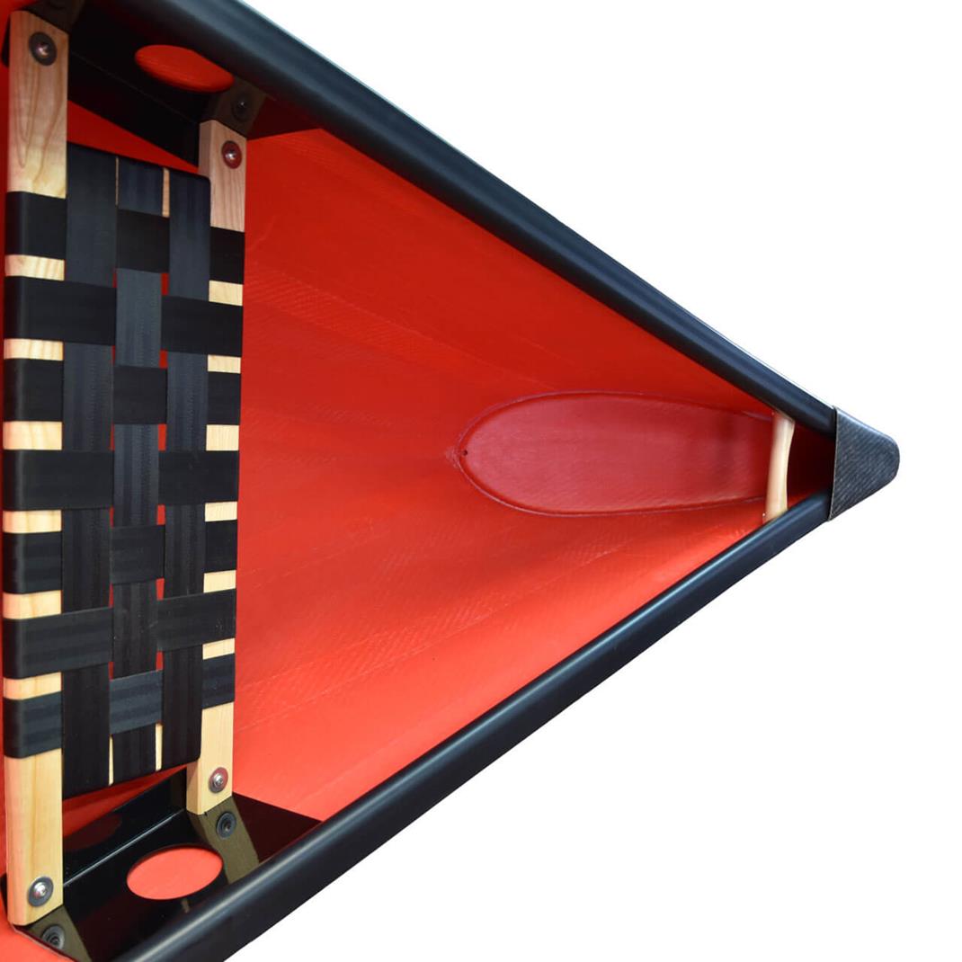 Die Esche-Sitze mit Rattan-Flechtgewebe verleihen dem Kanu Eleganz und bieten höchsten Komfort für längere Touren.
