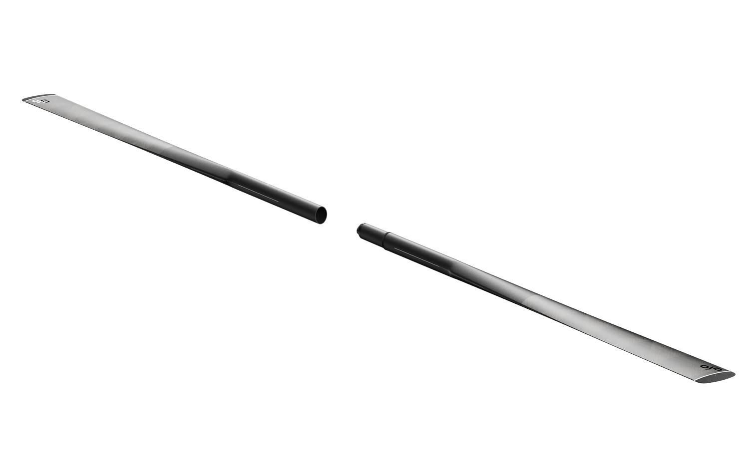 Die Blattform basiert auf dem bewährten Kalleq-Design: scharfkantig (1,1 mm), laufruhig und effizient. Durch den ovalen Schaftquerschnitt werden die Blätter zur Schulter hin kräftiger ausgeführt. Diese Konstruktion erhöht die Steifigkeit und belohnt saubere Technik mit maximalem Catch und sehr effektiver Kraftübertragung.