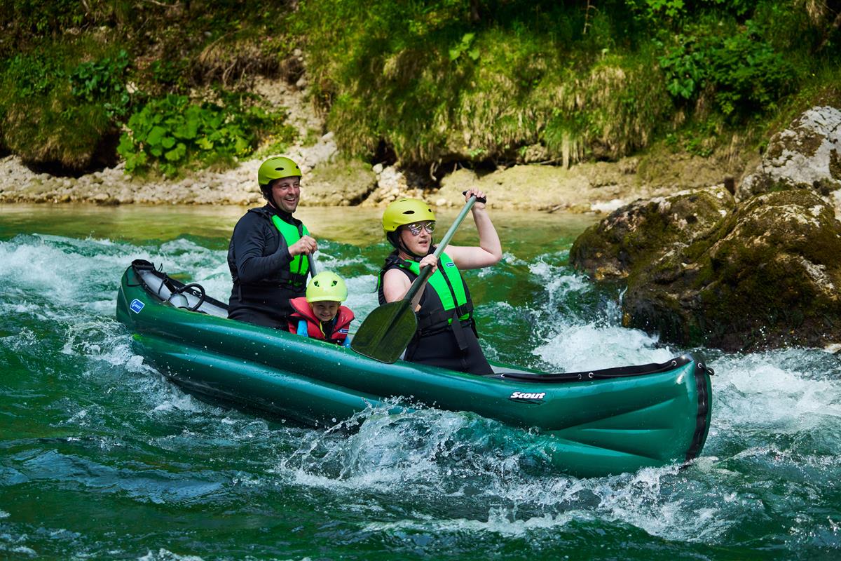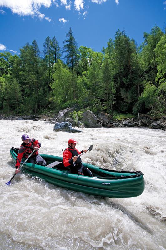 Der Schlauch-Kanadier SCOUT überzeugt mit einem großzügigen Innenraum, einem hohen Zuladungsgewicht und ausgewogenen Fahreigenschaften. Das alles werden sowohl die Abenteurer bei langen Fahrten mit viel Gepäck, als auch Adrenalin-Junkies bei Wildwasserfahrten sowie Familien mit Kindern bei behaglichen Spazierfahrten schätzen. Der SCOUT ist in den Ausführungen Standard und Economy (S/E) erhältlich. Die Standard Ausführung ist ein innovatives System mit sog. T-BONE-Streben, wodurch Stabilität des Bootes verbessert wird. So wird eine ähnliche Stabilität wie bei einem Festboot erreicht.