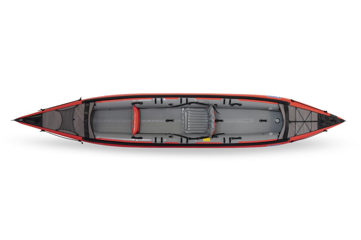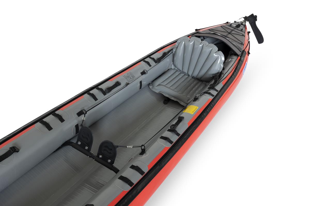 - Der Kajakboden besteht aus einem widerstandsfähigen Gummi-Drop-Stitch-Material, das die Langlebigkeit traditioneller Außenmaterialien mit den Vorteilen der Drop-Stitch-Technologie kombiniert.