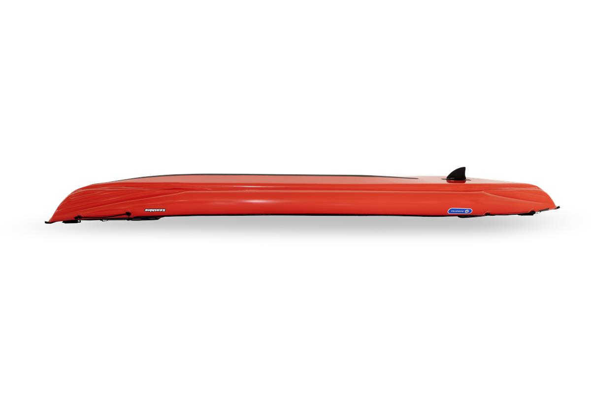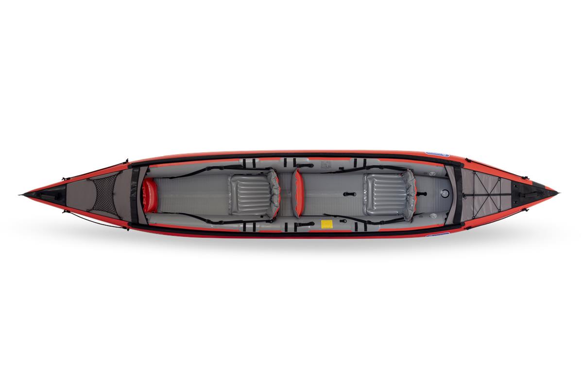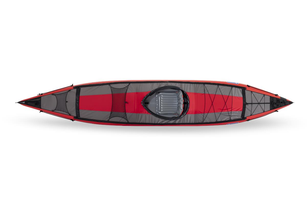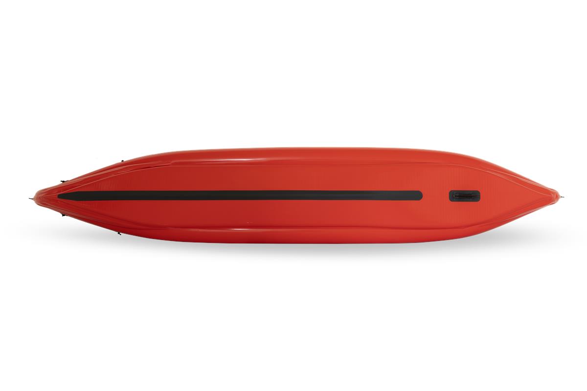 - Der v-förmige, gummibasierte Boden macht 2/3 des Kajaks aus und geht in ein flaches Heck über.