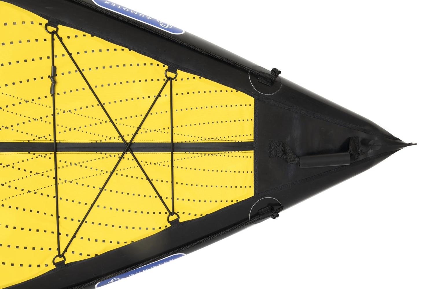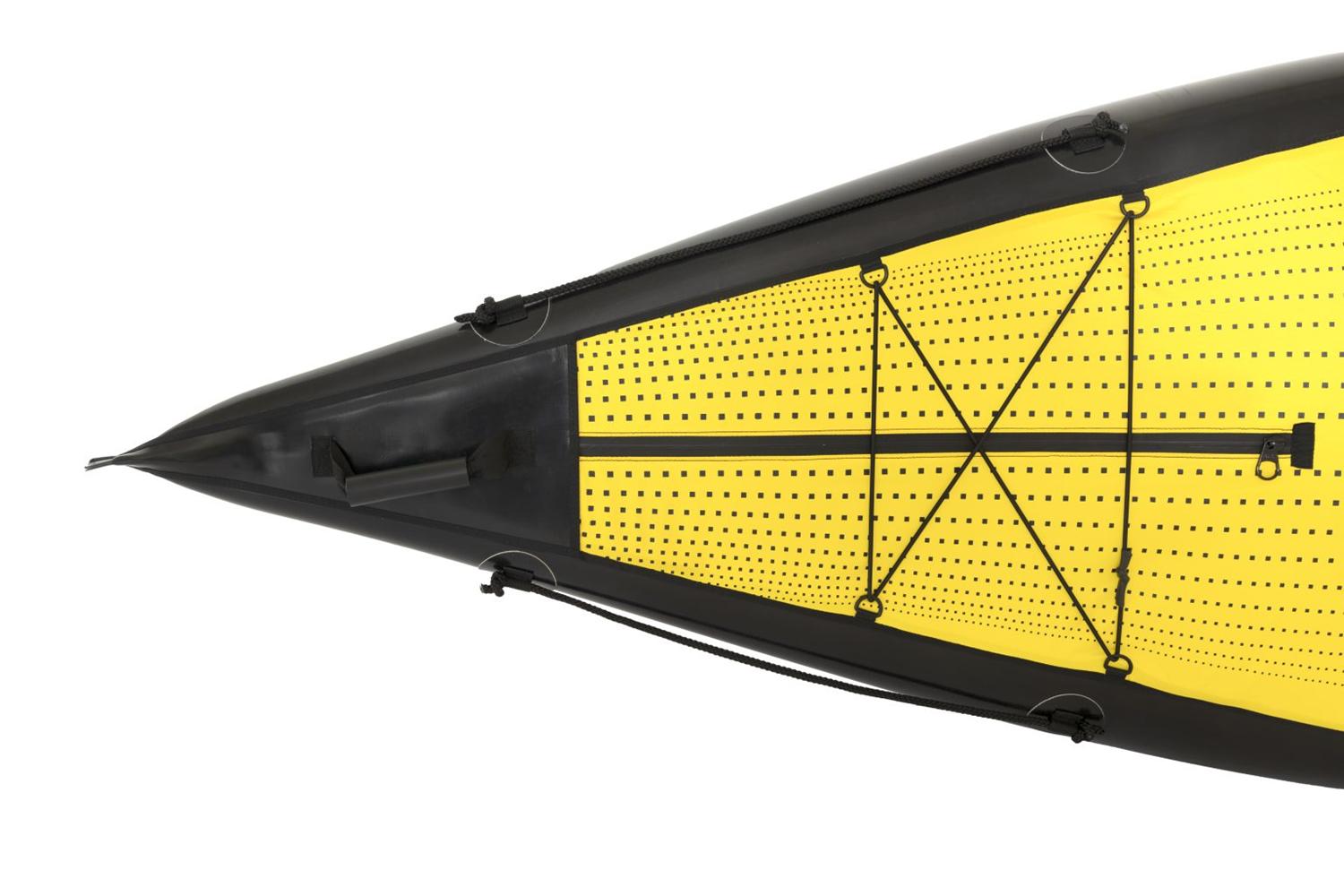 Zwei Aluminium-Verstärkungen sorgen für eine hervorragende Steifigkeit des Rumpfes und verbessern sowohl das Fahrverhalten als auch die Manövrierbarkeit. Gleichzeitig formen sie das geschlossene Deck, das zuverlässig verhindert, dass Wasser ins Innere gelangt. Mit nur 11,3 kg Gewicht ist das SWING 1 ein echtes Leichtgewicht und damit perfekt für Touren mit häufigem Umtragen des Kajaks.