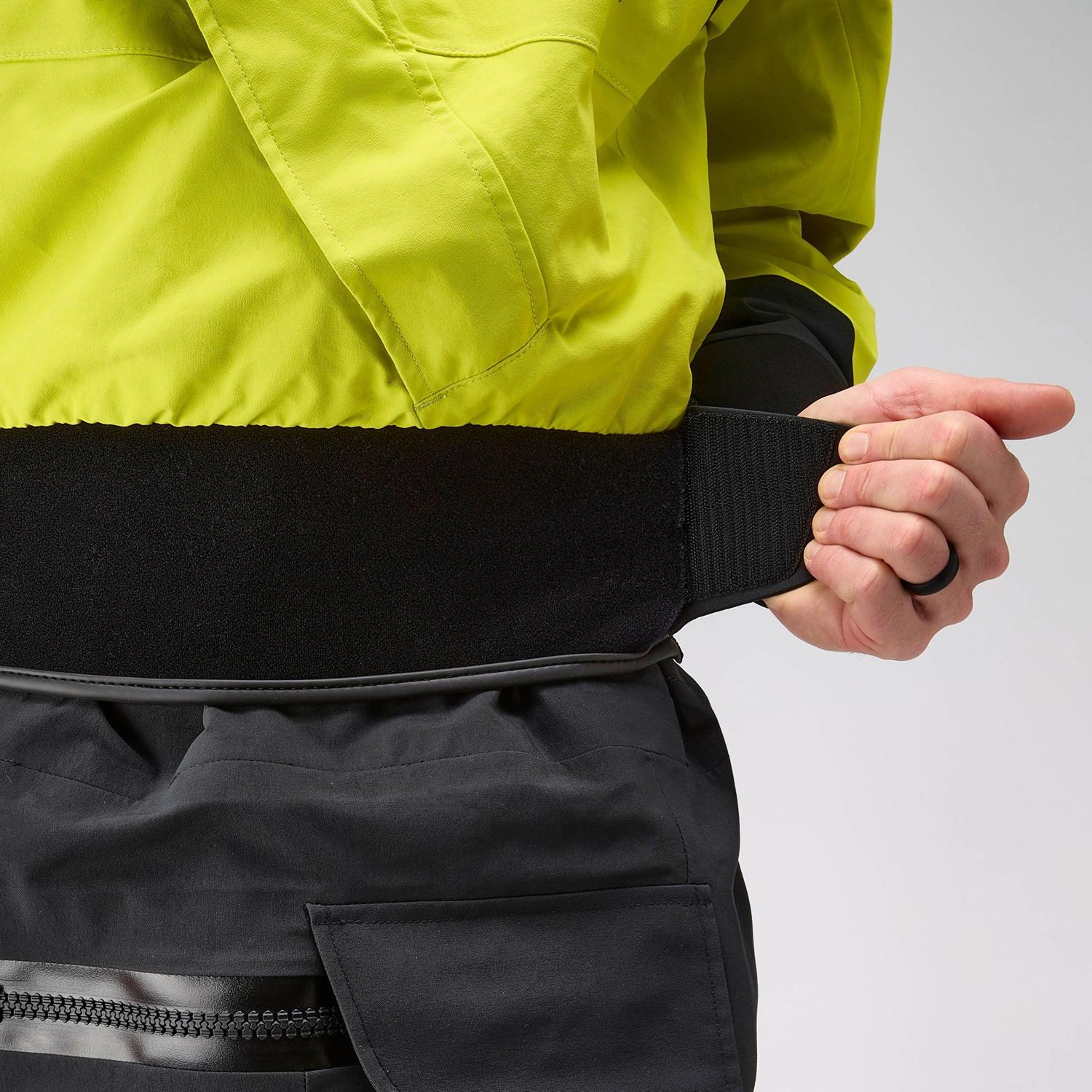 Der verstellbare Neopren-Doppeltunnel bietet eine optimale Verbindung mit der Spritzdecke und hält zuverlässig trocken. Praktische Details wie Brusttasche, Entlastungsreißverschluss und Befestigungspunkte für Hosenträger runden die Ausstattung ab.