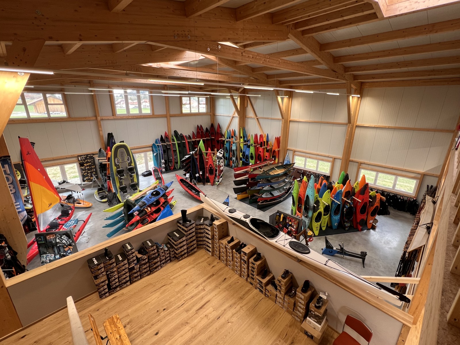 In unserem Ladengeschäft in Peiting erwartet dich die größte Boots-Ausstellung Oberbayerns mit mehr als hundert Booten zum Anfassen, Zubehör für jedes Abenteuer und einem ganzen Stockwerk voller Paddelbekleidung!